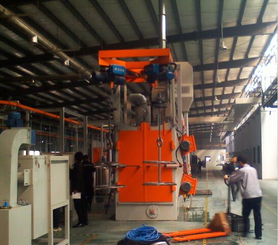吊鉤拋丸設備作為拋丸設備的標準機型,其工作圓筒直徑從900到1300 mm, 高度從1300 到3500 mm. 標準機型帶有2-7個拋頭,最大承載量達10000公斤,其生產效率相當高,靈活性跨度也相當大,是理想的清理強化設備,且操作簡便易學。拋丸設備專業技術人士表示:該設備具有機量大、清理效率高、結構緊湊、采用無地坑形式、對清理工件的外形結構無特殊要求等特點,可一機多用,其應用領域主要為鑄造、建筑、化工、電機、機床等行業的中、小型鑄、鍛件的表面清理或強化處理。