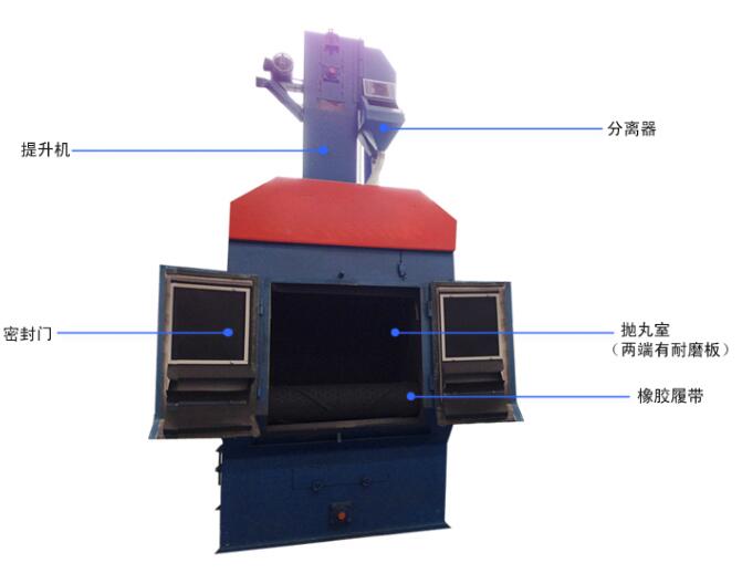 履帶式拋丸機一種鑄件、鍛件及圓簧、軸承的表面清理強化的新型清理設(shè)備。它能清理工件的重量,尺寸,體積,生產(chǎn)效率,可進行人工,機械或自動加料。工件在拋丸室里進行翻滾,拋丸室由環(huán)形的槽型皮帶以及兩頭由高耐磨材料制成的封頭組成,輸送皮帶上裝有導(dǎo)向條,從而保證了工件所有表面都暴露在外且翻轉(zhuǎn)時不會發(fā)生過度碰撞。工人在操作履帶式拋丸清理機時應(yīng)嚴格遵循實用程序: